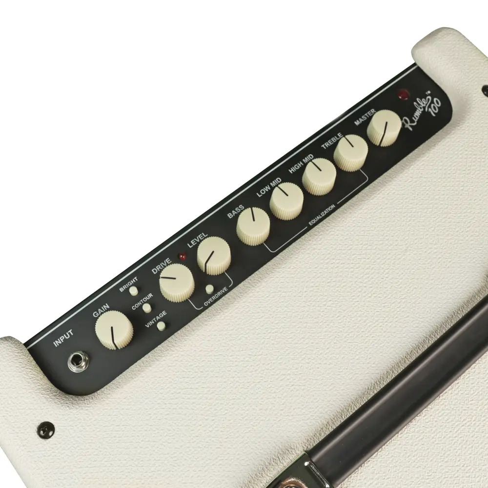 The Fender Rumble 100 marks a major step forward in portable bass amplification. Re-engineered from the ground up, it is lighter, louder and more powerful than previous generations, while delivering the unmistakable Fender look and tone.