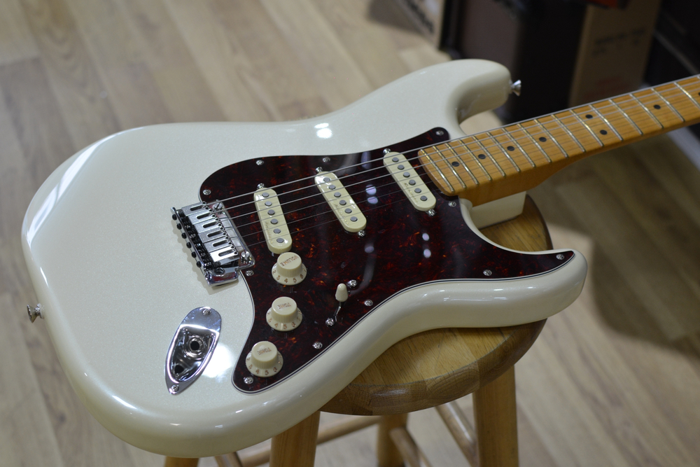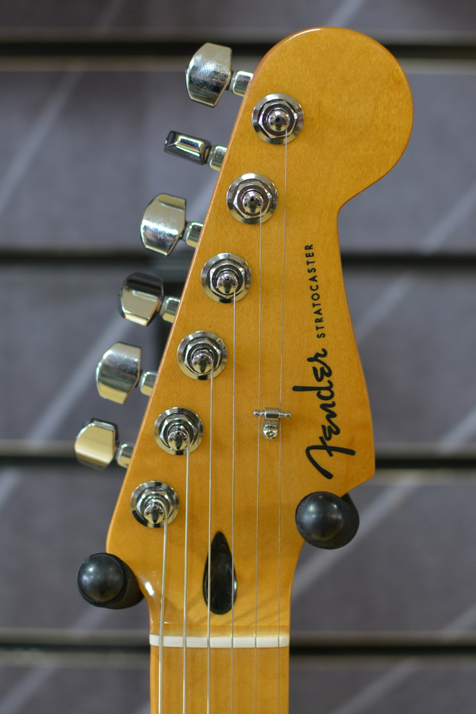 This Stratocaster features a two-point tremolo bridge with 6 steel block saddles for superior intonation, sustain, tuning stability, tremolo action and ease of adjustment.