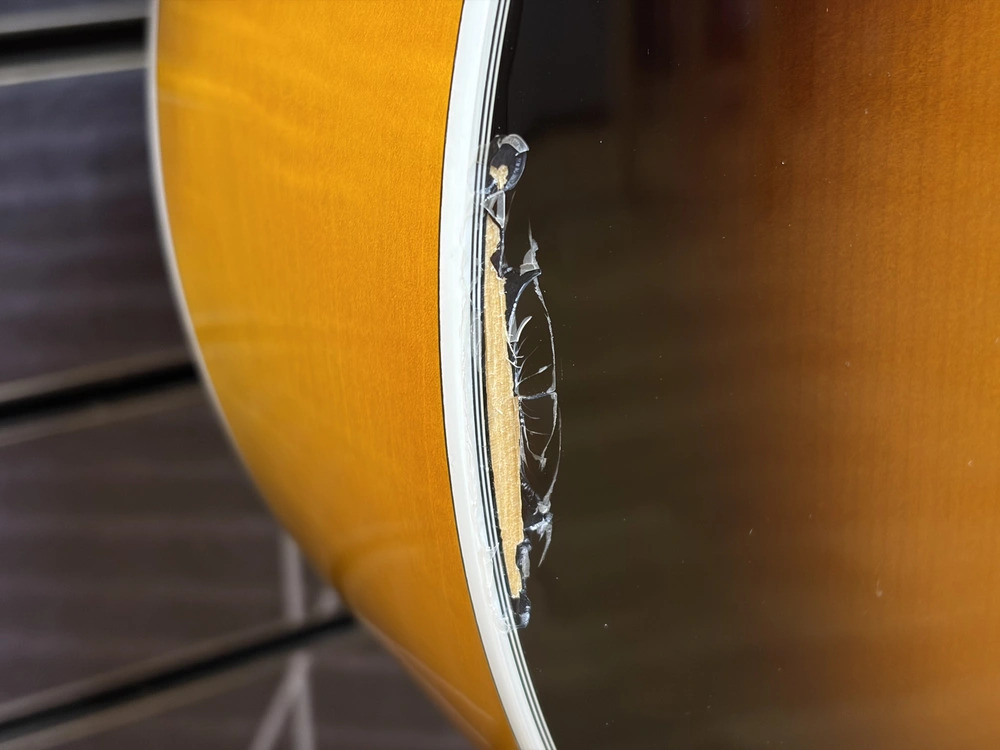 This guitar is B-Stock and has a dent on the top/side of the body, as shown in the photos.