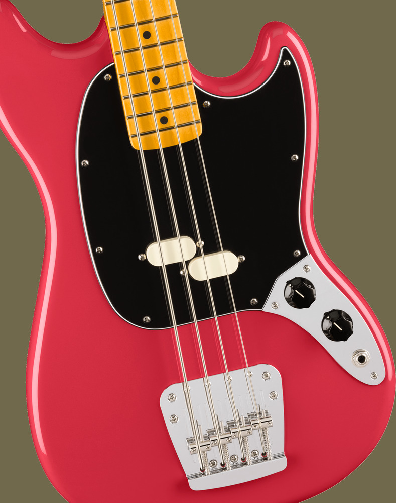 At its heart, a vintage-inspired Coastline™ ‘70s Mustang® Bass split-coil pickup delivers the unmistakable punch, depth, and articulation that defined generations of recordings. The sleek Modern “C”-shaped neck with a 9.5"-radius fingerboard and Medium Jumbo frets ensures smooth, effortless playability, while Fender ‘lollipop’ tuners offer classic style and rock-solid tuning stability.