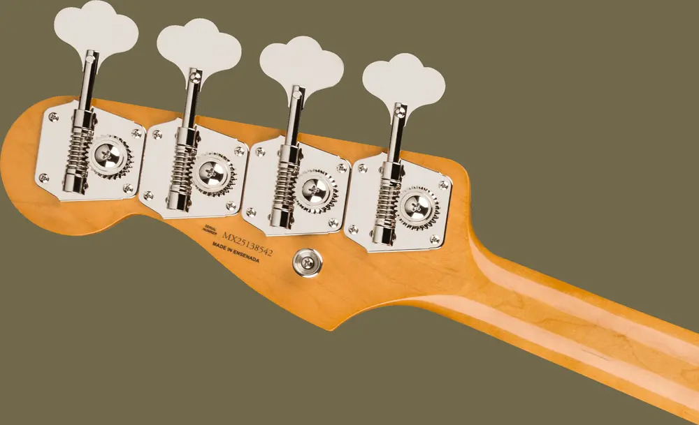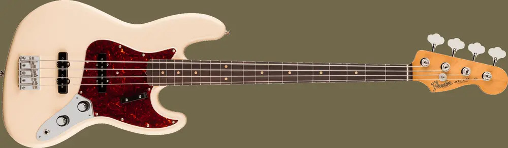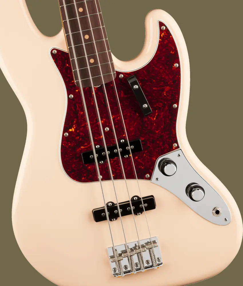 An authentic early ’60s “C”-shaped neck profile offers a comfortably familiar playing experience, while the 7.25" radius rosewood fingerboard with vintage-tall frets provides smooth playability and a truly period-correct feel. Two vintage-style early ’60s single-coil Jazz Bass pickups produce the warm, woody character and articulate growl that made the Jazz Bass a studio and stage favourite.