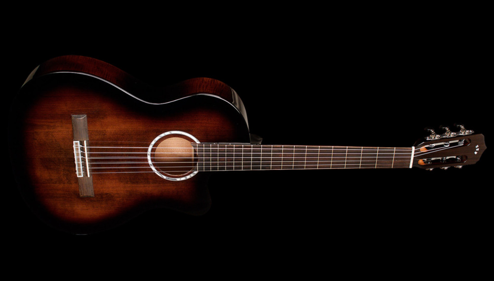 Córdoba’s entry into the fusion line! The perfect choice to transition from a steel string to a nylon guitar, the Córdoba Fusion 5 features a solid spruce top, mahogany back and sides, a full body with cutaway for extended playing range, side dot fret position markers, and a pearl decal rosette and arches. The fusion neck with a 16” radius fretboard and smaller, 1 7/8” (48mm) nut width provides a playing experience very close to that of a steel string guitar. This familiarity offers an easy transition for steel string players and players with smaller hands to the world of nylon string guitar. Added side dot markers also depart from traditional nylon string guitar construction, providing players reference for their position on the fretboard. Equipped with the Fishman Sonitone Pickup System, the Fusion 5 is ready to plug in and play. Available in Gloss Natural finish with mahogany back and sides and Gloss Sonata Burst with elegant flamed mahogany back and sides.