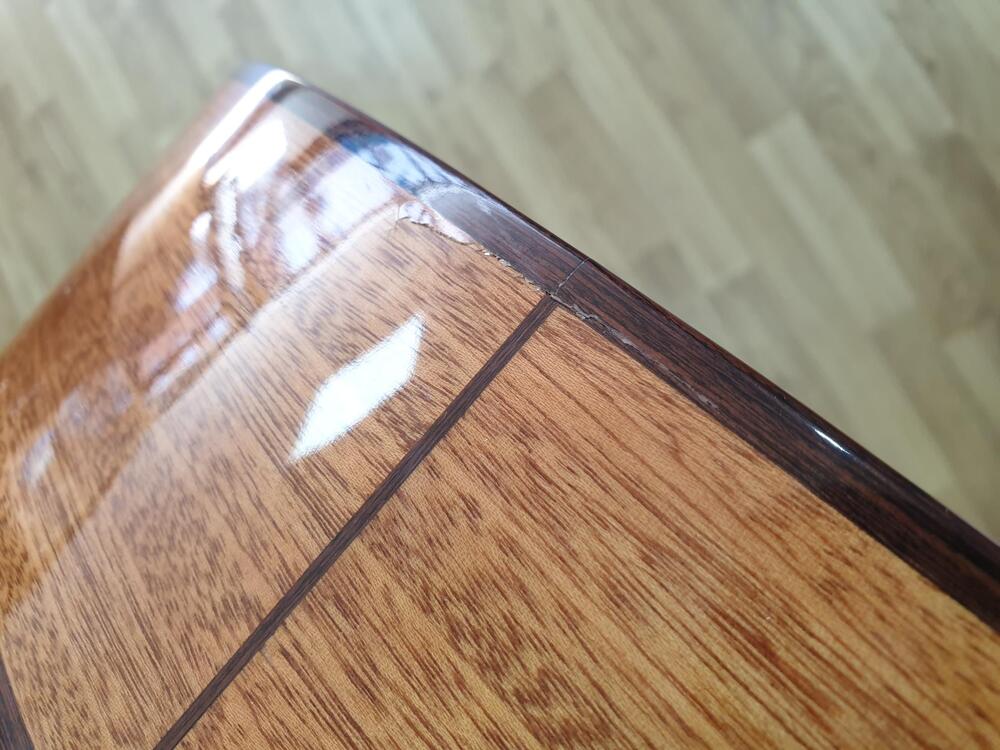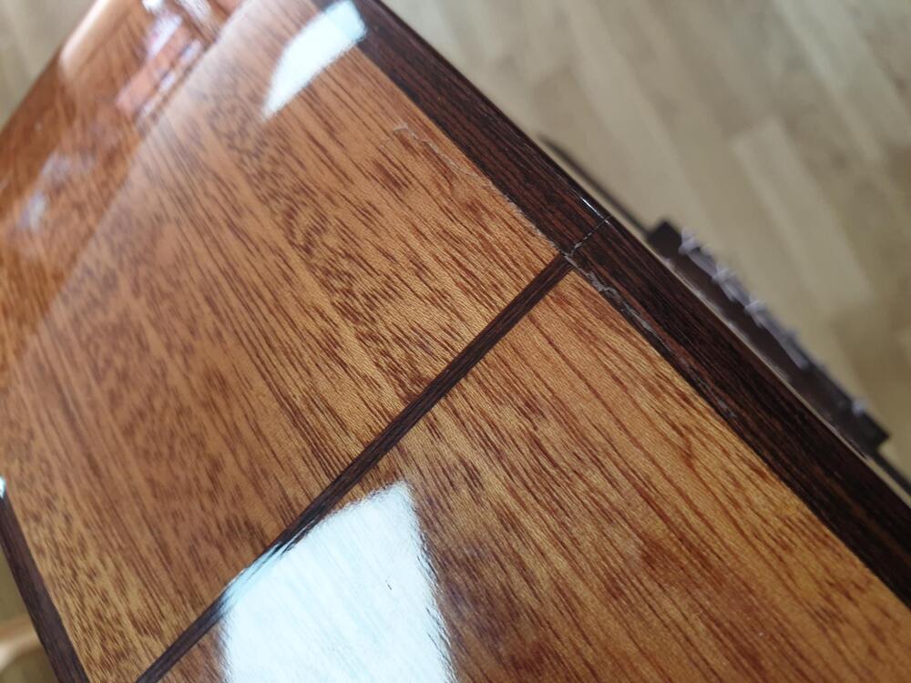 This is a new guitar and comes with its full warranty. There has been some damage to the base causing a crack (pictured).