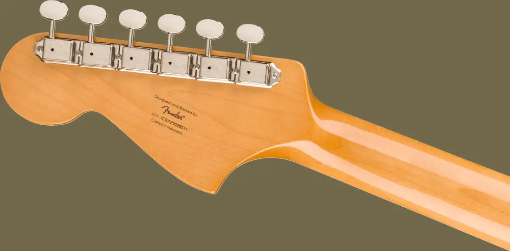 Player-friendly features include a slim "C"-shaped neck, a smooth 9.5" radius fingerboard with narrow-tall frets for effortless playability, and a floating bridge with barrel saddles for stable intonation. This throwback Squier model also includes 1960s-inspired headstock markings, rich nickel-plated hardware, and a vintage-tint gloss neck finish for an authentic old-school vibe.