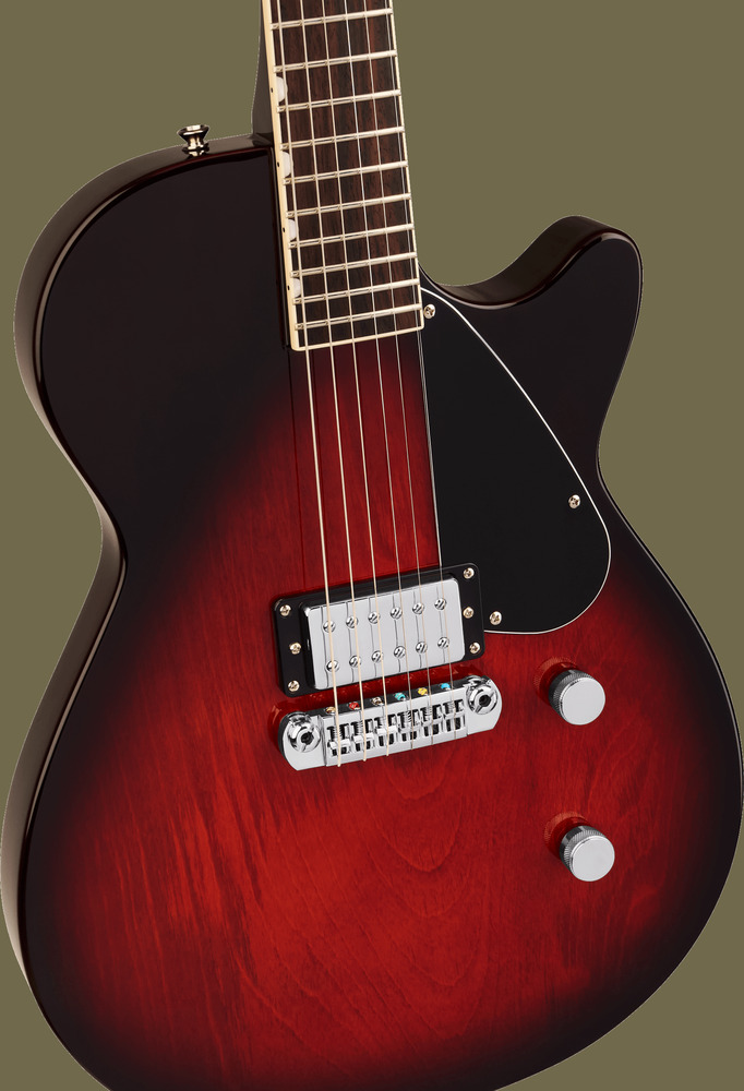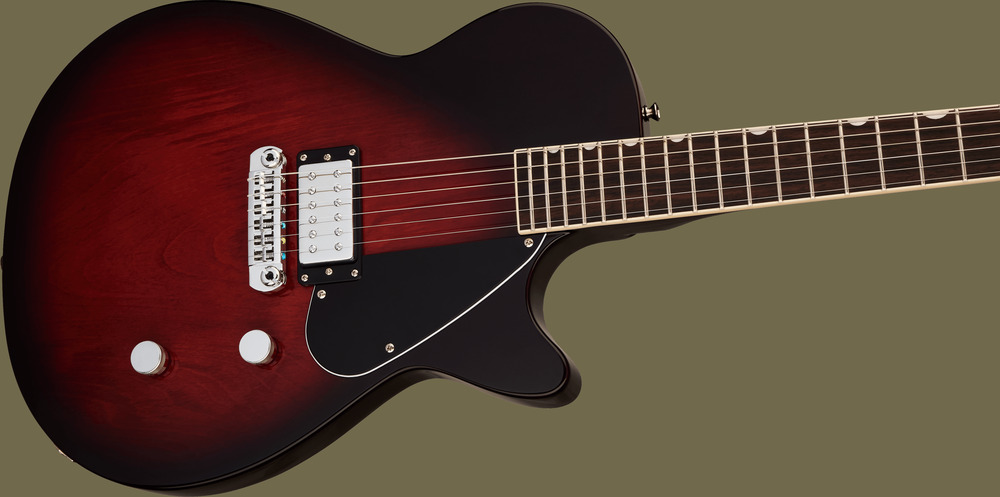 The Electromatic Jet is equipped with a control circuit designed to give you complete tonal control. A master volume with treble bleed circuit provides precise adjustment while maintaining clarity at any volume. A master tone controls provides intuitive control, calibrated for stellar tone at every setting. A Push/Pull switch on the tone control unlock snappy and glassy true single-coil timbres.