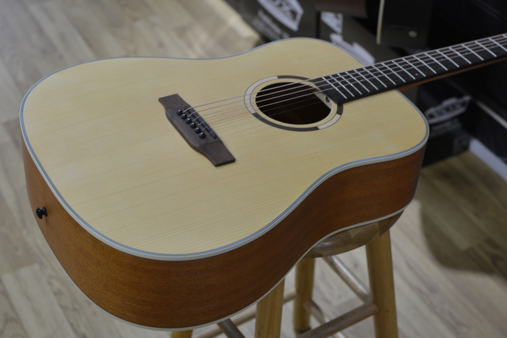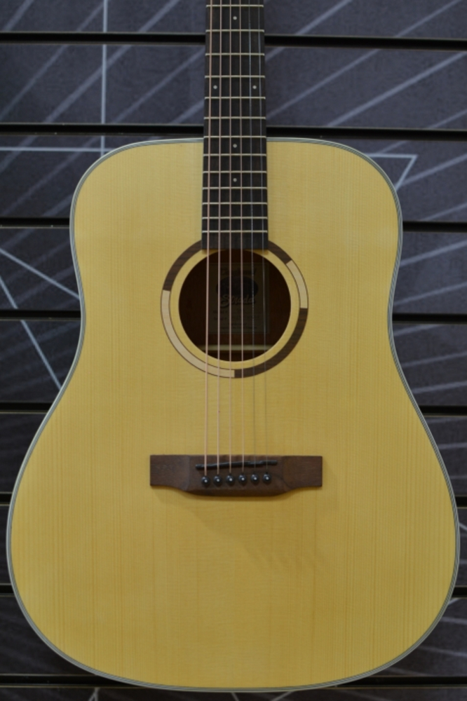 The guitar is finished with an Open Pore Satin finish, which enhances the natural beauty of the wood and allows it to breathe and resonate more freely. This finish also provides a smooth and tactile feel, ensuring comfortable playability. Combining the powerful dreadnought shape with the complementary tones of spruce and mahogany, the Strada TS3 is both visually appealing and acoustically exceptional, making it a preferred choice for serious guitarists.