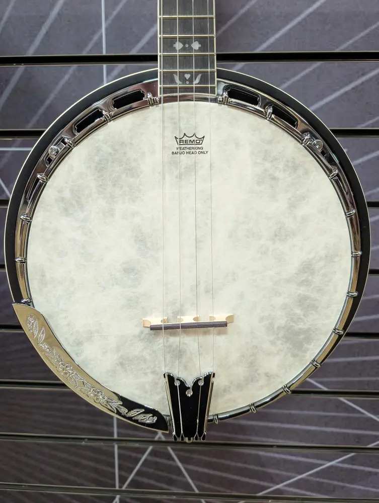 The Empress is a 4-string Irish/Gaelic banjo with 17 frets, traditionally tuned to G–D–A–E (Irish tuning). Its shorter 502mm scale length makes it ideal for the fast melodic passages common in Irish fiddle music.