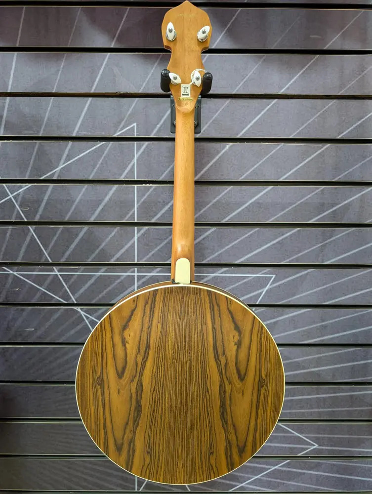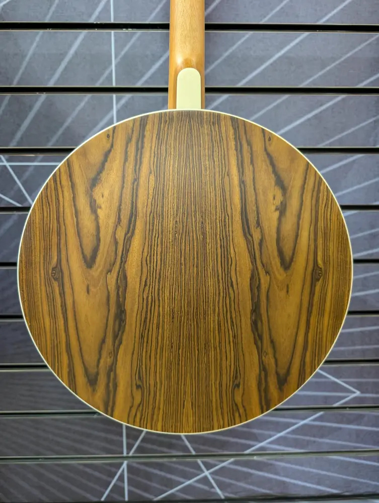 Blending this rich heritage with master craftsmanship, the Empress banjo stands out visually and sonically. Its figured burl walnut resonator displays a mesmerising marbled grain, paired with a walnut rim and neck that give the instrument both elegance and character.