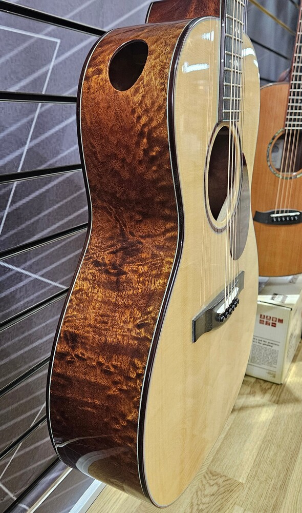 The L-OOSS-QS from Eastman’s Luthier Series blends classic small-body design with modern innovation. Featuring a solid European spruce top and stunning AA quilted sapele back and sides, it delivers exceptional clarity, warmth and projection. A unique sound port on the shoulder enhances the acoustic experience for both player and audience.