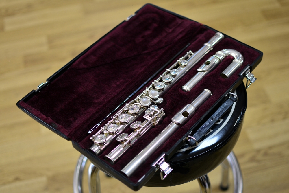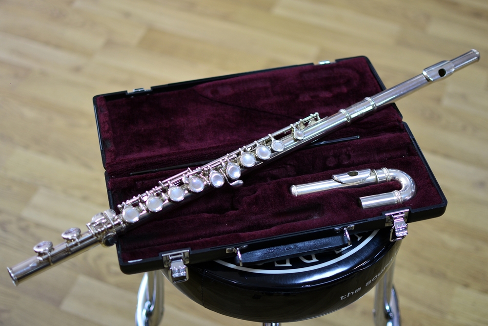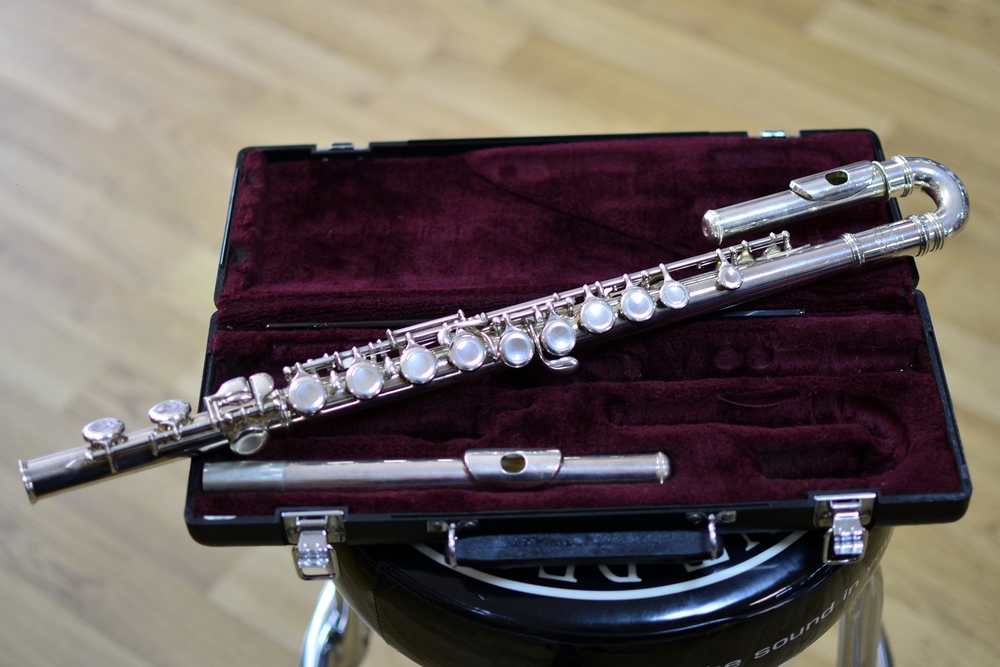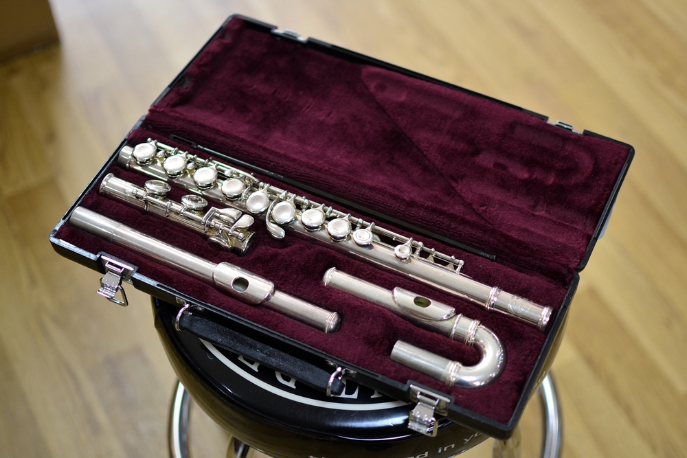This curved head flute has been part of our hire stock for a number of years and has been well maintained. It has both the straight and curved headjoints which means that a young 6-8 year old beginner can learn to play the flute and then move onto the straight headjoint when they grow.