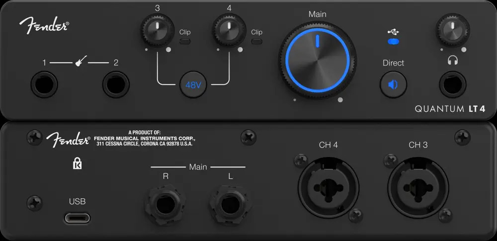The Fender Quantum LT 4 expands your recording setup with increased I O and flexible connectivity, making it ideal for duos, small ensembles, content creators and growing home studios. Two transparent MAX-HD microphone preamps deliver an impressive 75 dB of gain each, ensuring clean, detailed results with any microphone. Fender-designed instrument inputs provide natural tone for guitars and basses, while balanced TRS outputs and a powerful headphone amp offer versatile monitoring options.