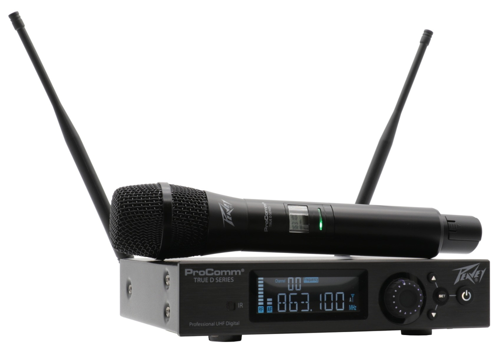 The Peavey ProComm TRUE D UHF wireless handheld microphone system delivers excellent audio performance, paired with user-friendly features.