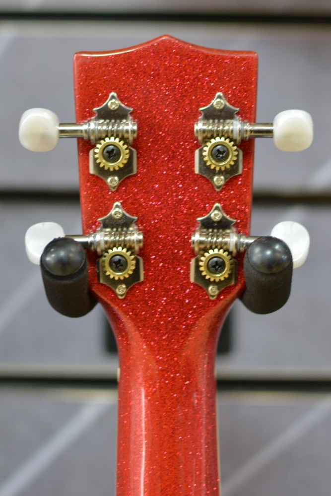 Welcome to the Roaring 2020s! 1920 would have been jubilant to have these glittery, glamorous ukuleles! So classywith colours like Ritzy Red, Pink Champagne, Rhapsody in Blue, and Stardust Gold outlined in cream binding and gloss finishthey are hard to walk past. Each one makes you want to stop and stare and see if they sound as good as they lookand they do!