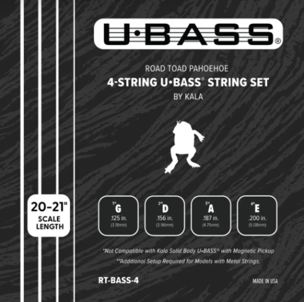 The Road Toad Pahoehoe U•BASS® Strings are Kala’s signature light-tension “black rubber” strings — a proprietary polyurethane blend that delivers a uniquely round, upright-style tone with impressive low-end depth. These strings offer exceptional flexibility, a smooth feel, and the classic, warm U•BASS® sound that started it all.